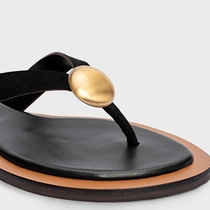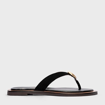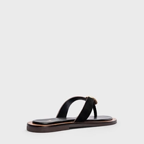 Flat Thong Coin Effortless Couro Suede Preto