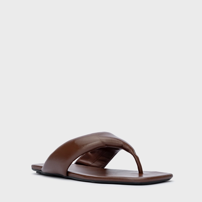 Flat Thong Couro Marrom Mahogany