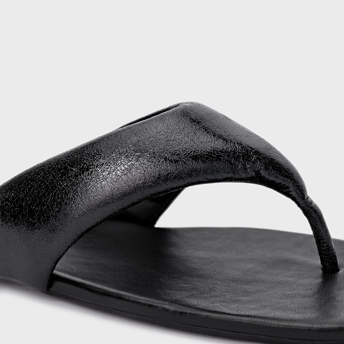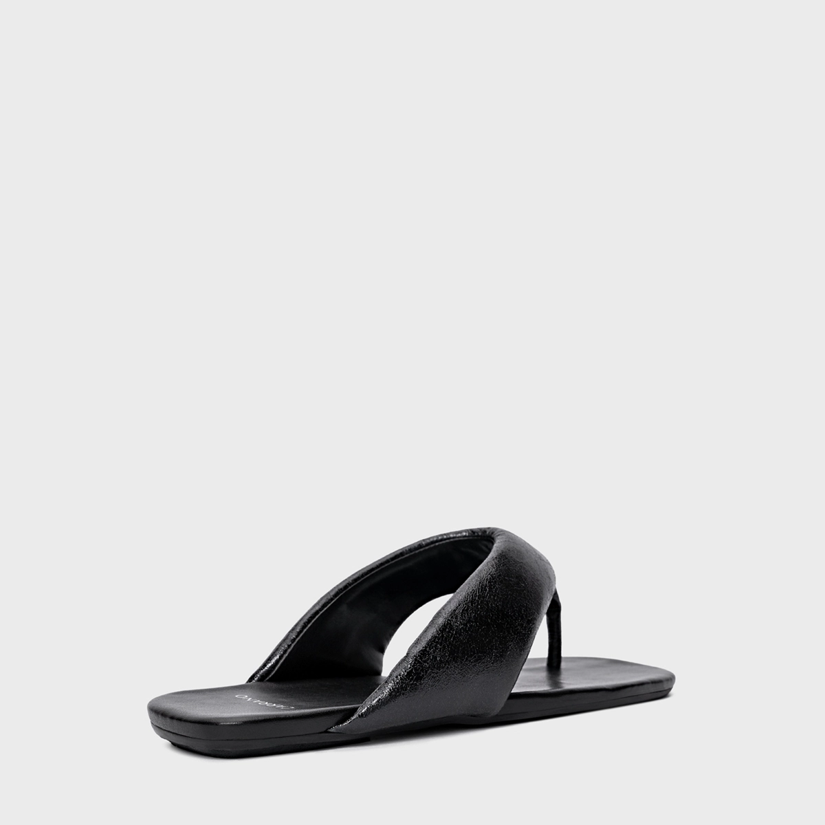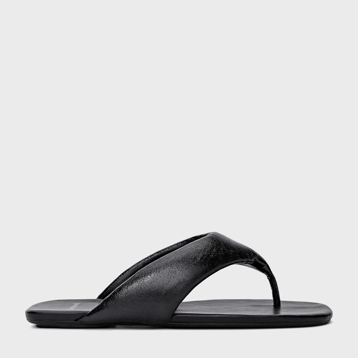 Flat thong de couro e bico quadrado. Traz tiras largas com espuma aplicada que é puro conforto, dividindo os dedos. Aberto, deixa todo pé à mostra.