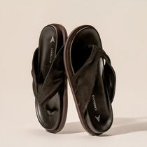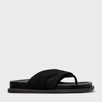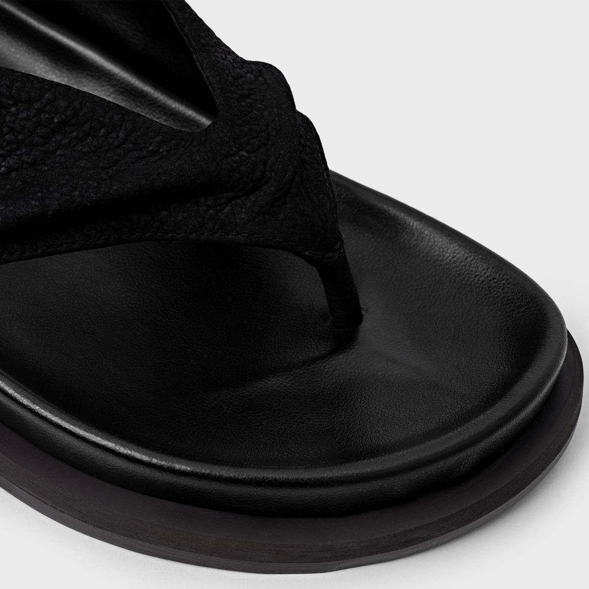 Flat Thong Papete Ripple Couro Nobuck Preto