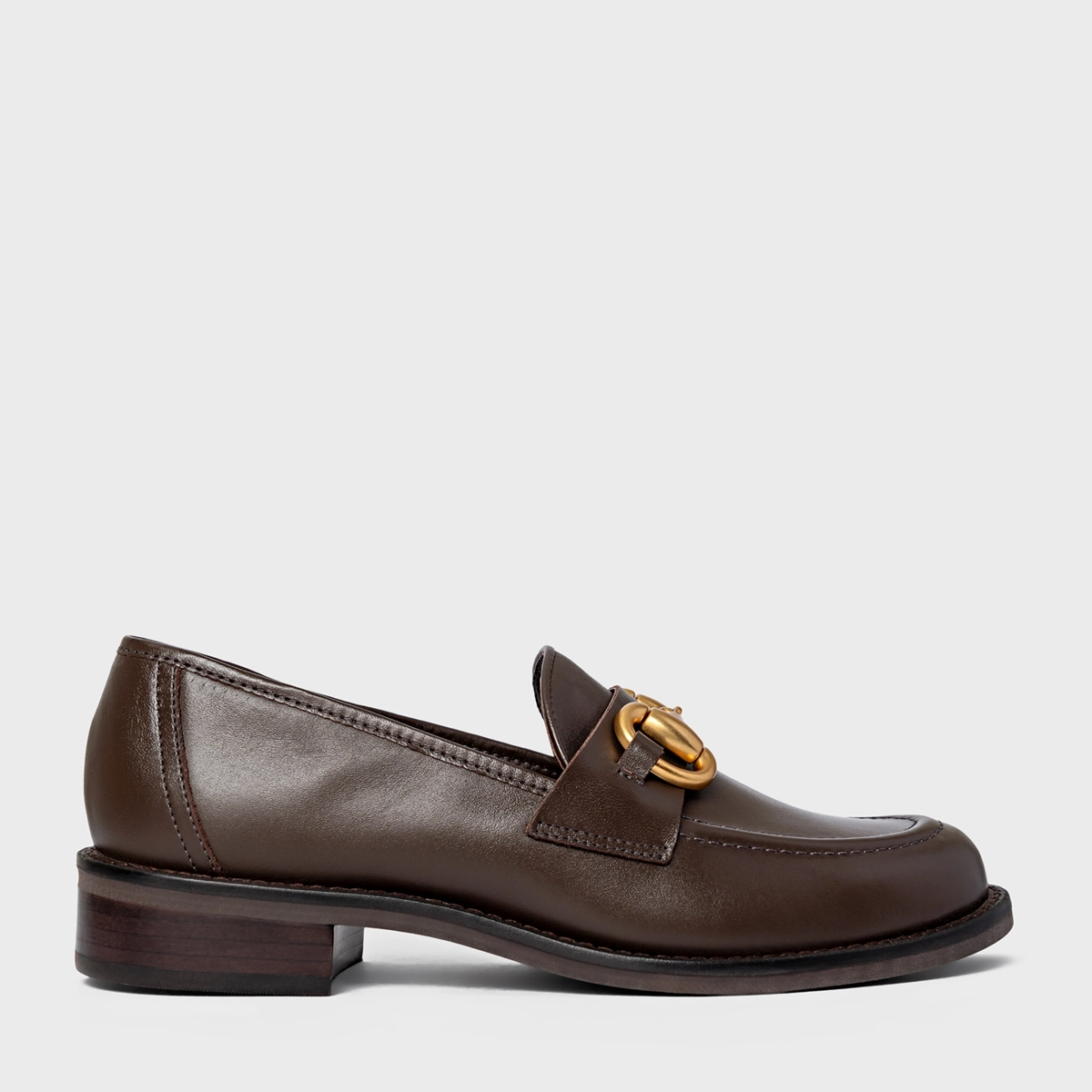 Loafer Bridão Salto Bloco Couro Marrom Dark Brown