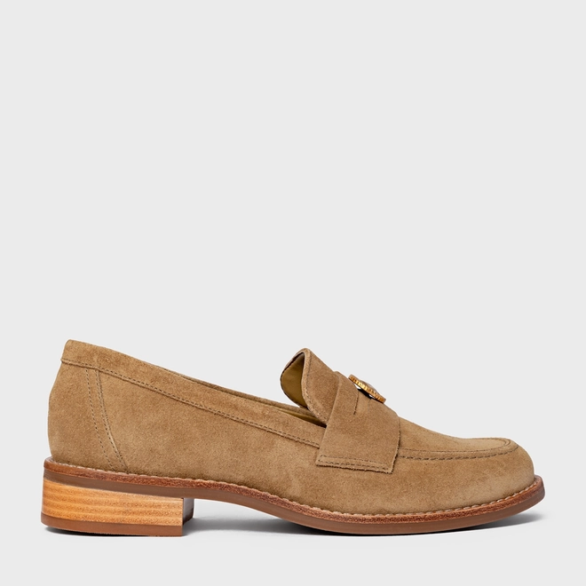 Loafer Coin Couro Suede Bege Almond