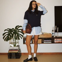Por que apostar? O mocassim é um verdadeiro clássico. Versátil e atemporal, e que nunca sai de cena. Como usar? Para um look equilibrado, combine o mocassim com meia soquete e uma saia balonê ou saia lápis, criando uma mistura de elegância e atitude. Se quer um toque mais casual e cheio de personalidade, aposte em uma jaqueta de couro sobre uma camiseta polo listrada, criando um contraste moderno entre o clássico e o fashionista.