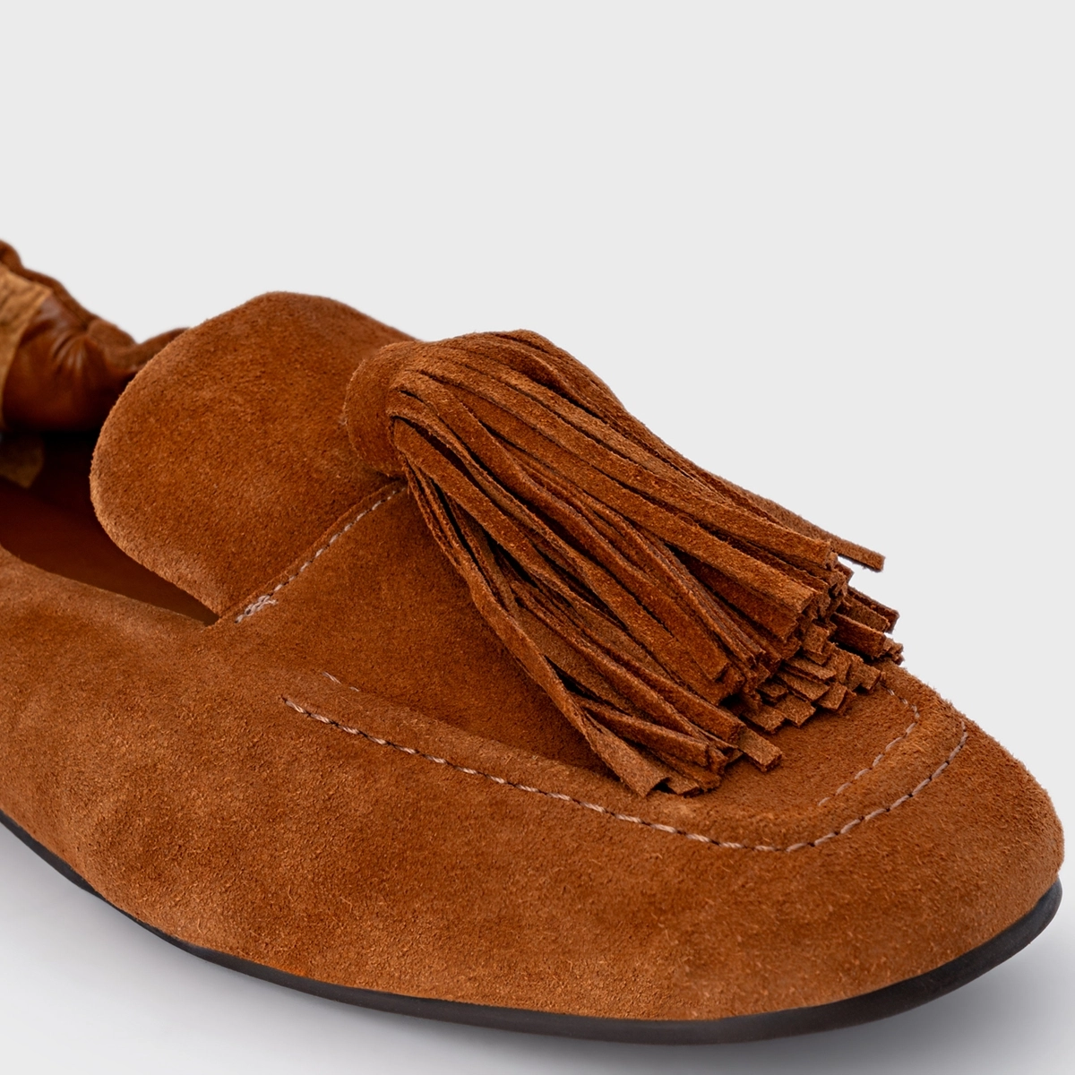 Loafer Ripple Franjas Couro Suede Marrom Ferrugem
