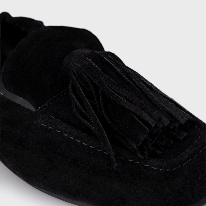 Loafer Ripple Franjas Couro Suede Preto