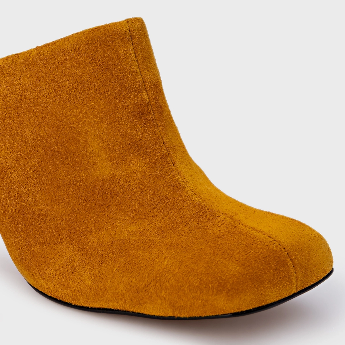 Mule Blown Salto Fino Couro Suede Amarelo Curcuma