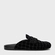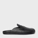 Mule clog em couro, com bico arredondado e solado rasteiro. Possui cabedal fechado e parte traseira aberta.