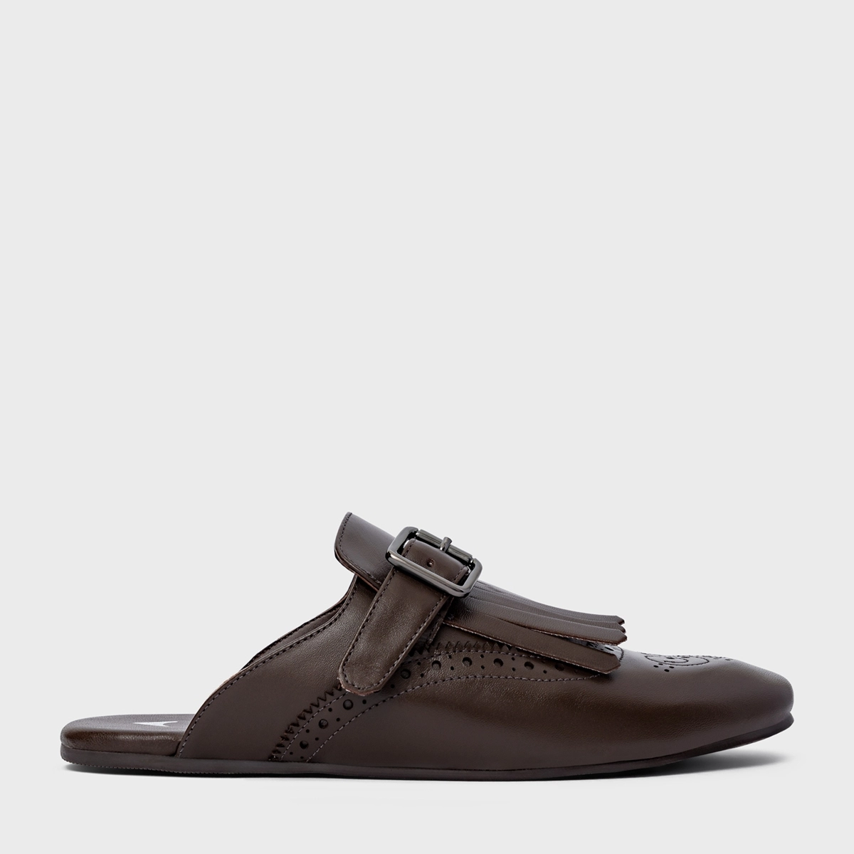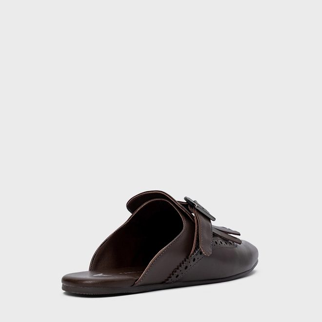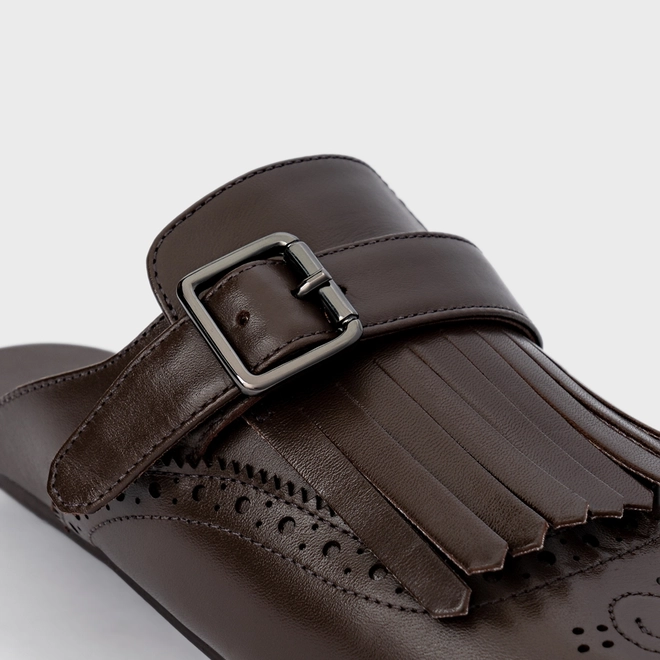 Mule Clog Franjas Couro Marrom Dark Brown