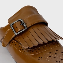 Mule Clog Franjas Couro Marrom Saddle