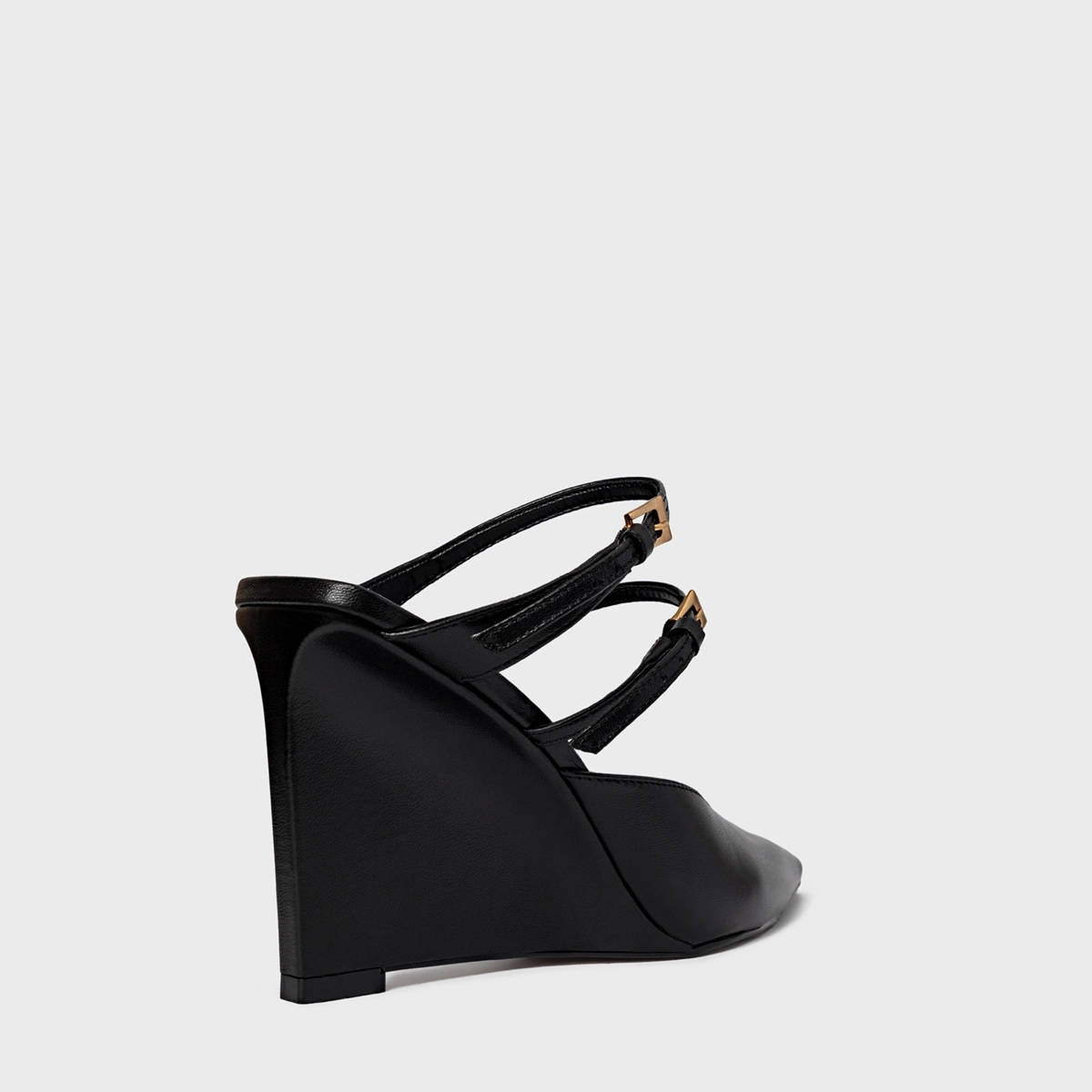 Mule Fivelas Anabela Couro Preto