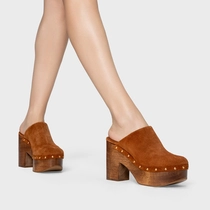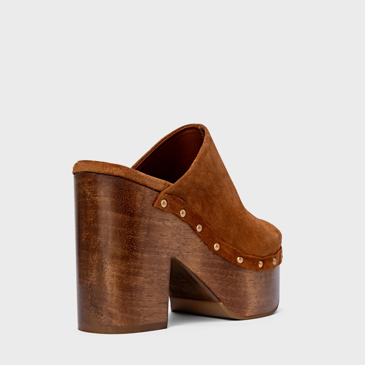 Mule Plataforma Wood Studs Couro Suede Marrom Ferrugem