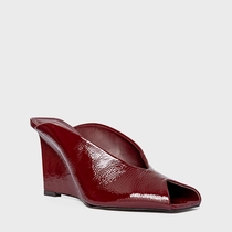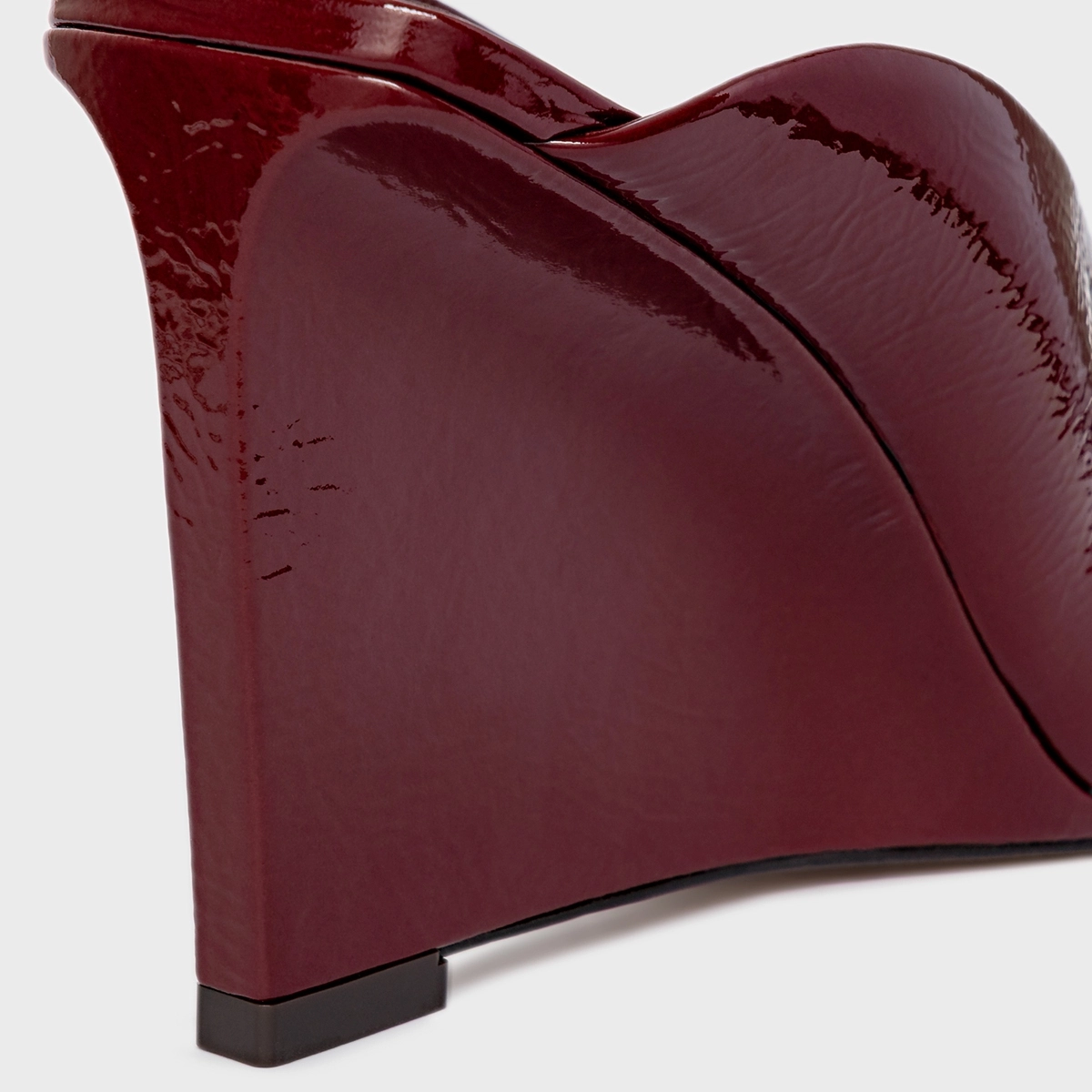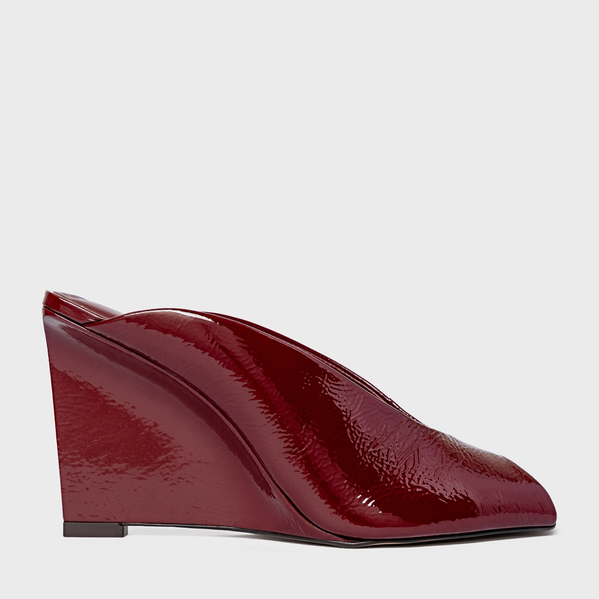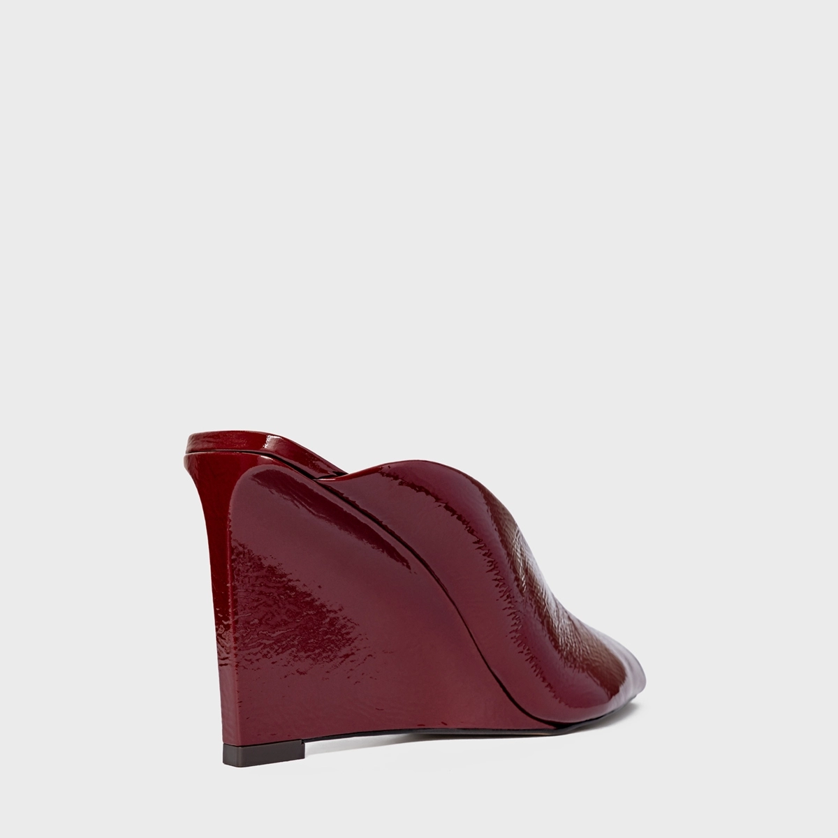 Mule Recortes Salto Anabela Couro Verniz Vinho Mahogany