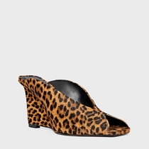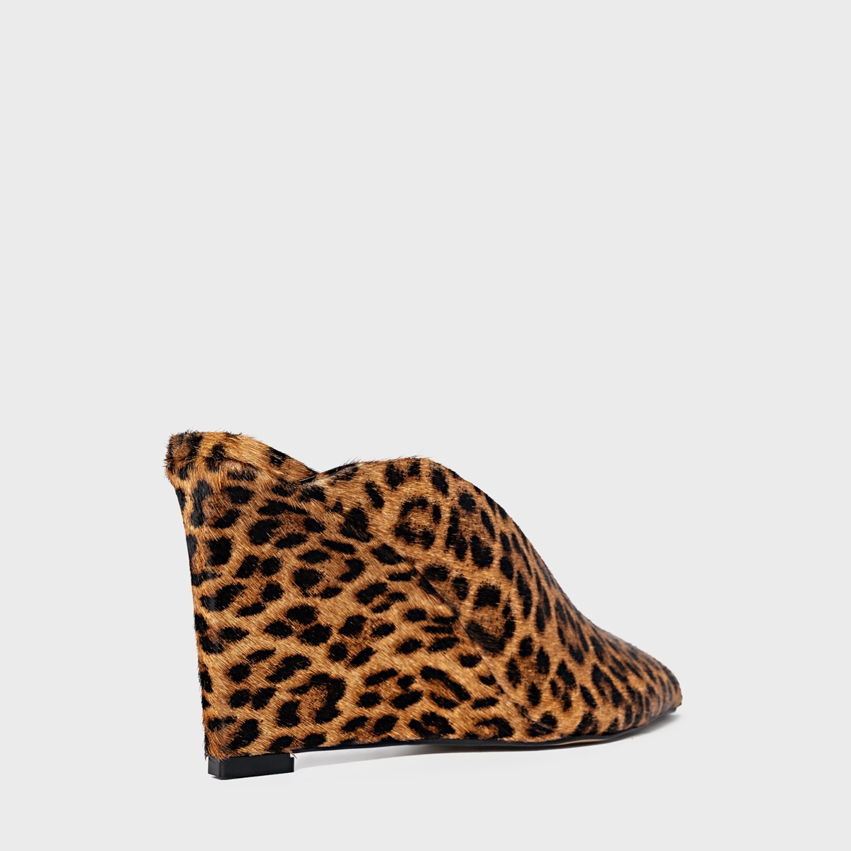 Mule Recortes Salto Anabela Pelo Animal Print Honey