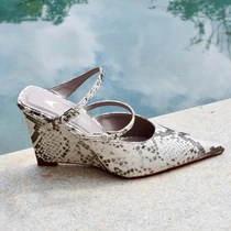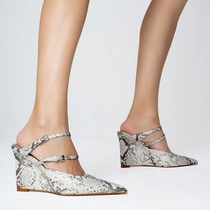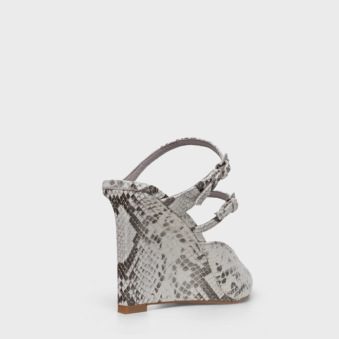 Mule Strips Fivelas Anabela Couro Python Animal Print Gray