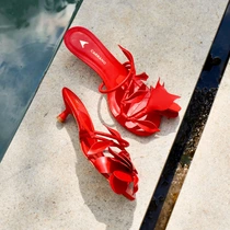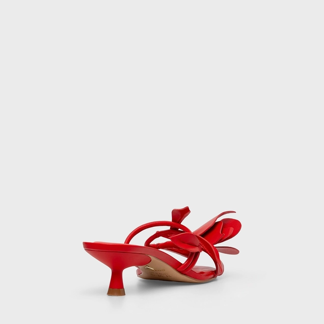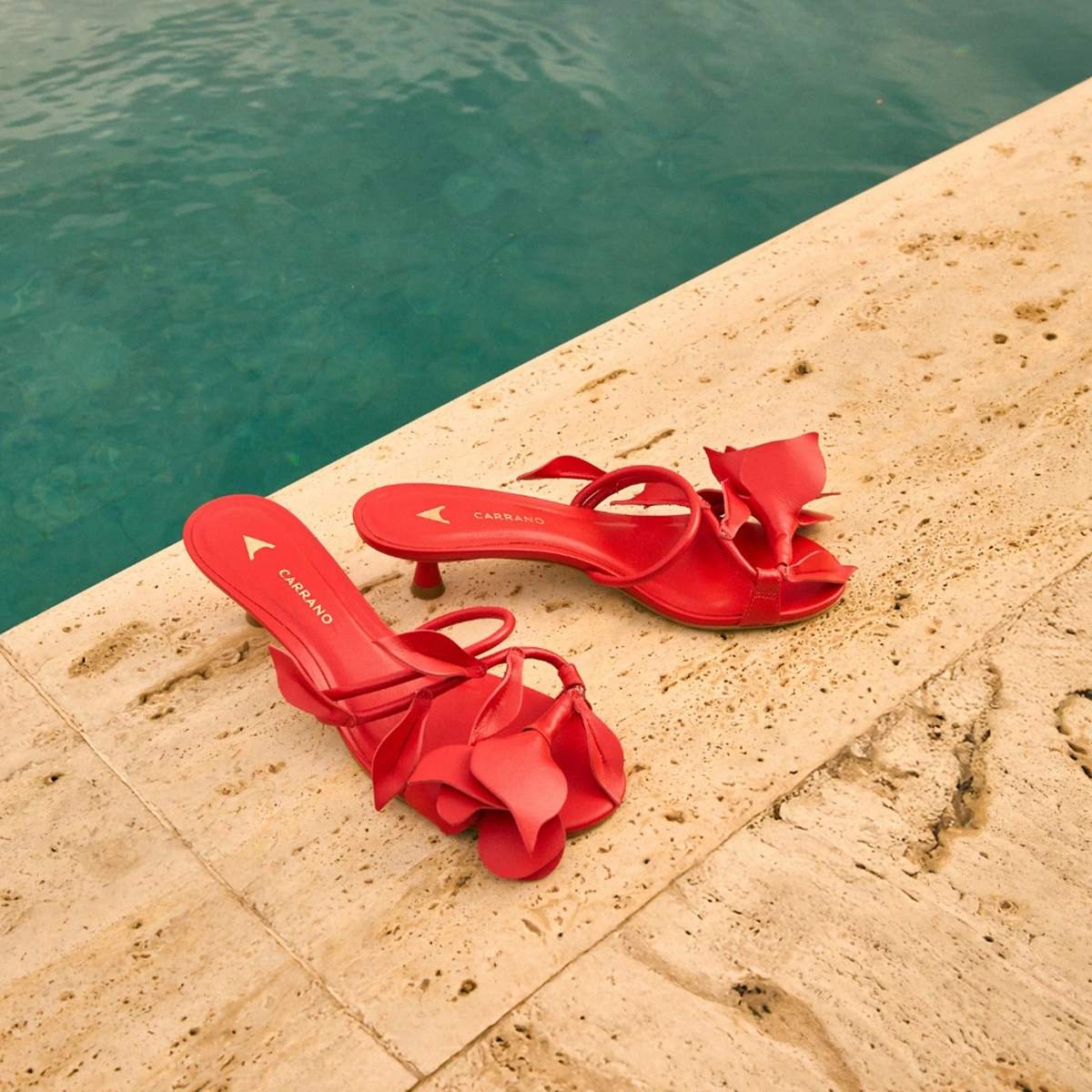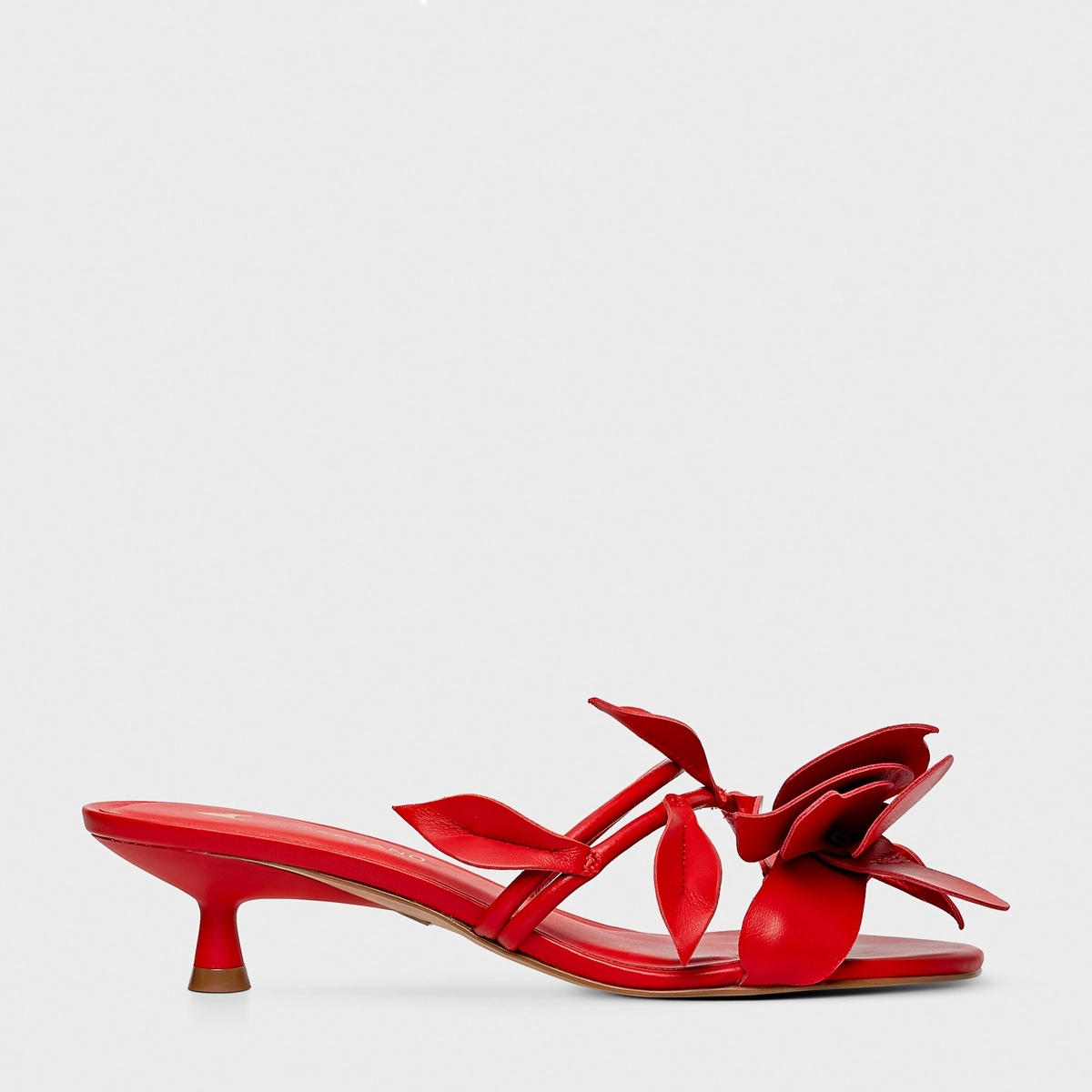 Open Mule Flower Salto Fino Couro Vermelho Carrano