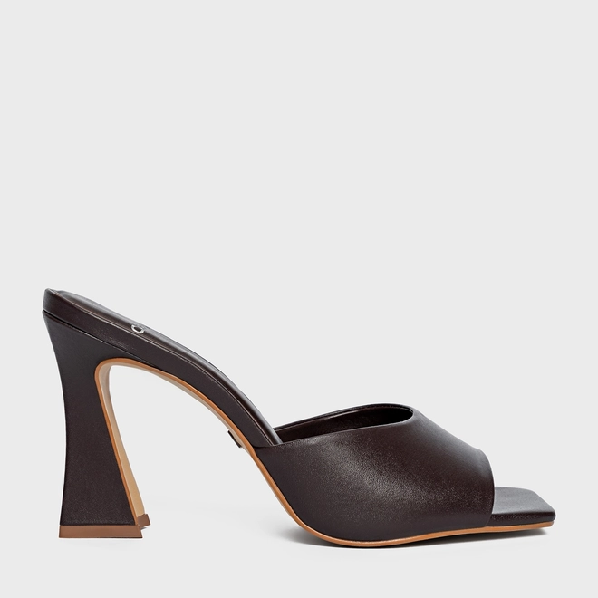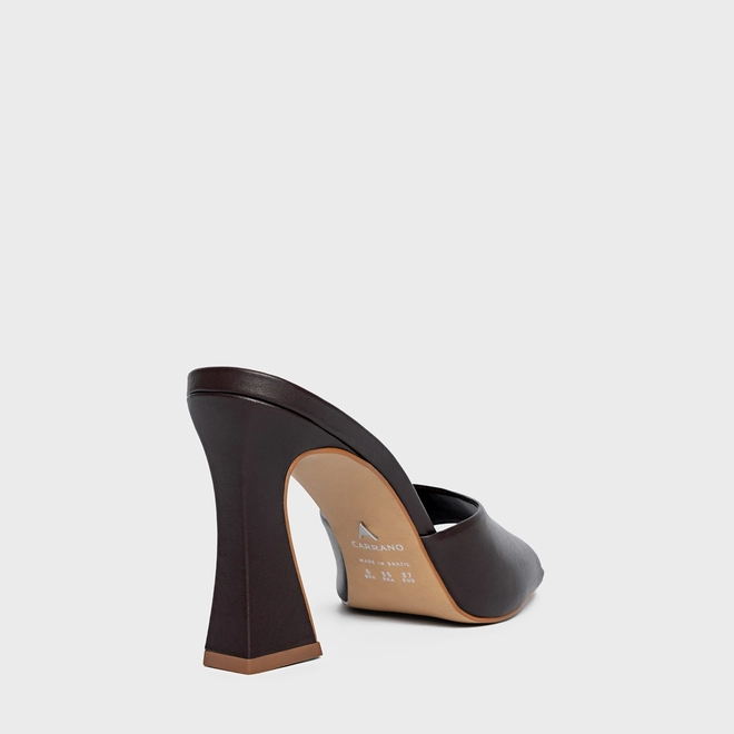 Open Mule Holiday Salto Vírgula Couro Marrom Dark Chocolate