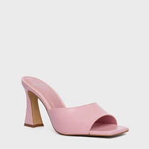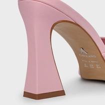 Open Mule Holiday Salto Vírgula Couro Rosa Baby