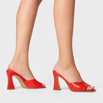 Open Mule Holiday Salto Vírgula Couro Vermelho Bright