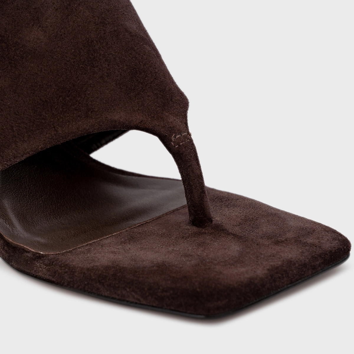 Open Mule Maxi Thong Salto Uno Couro Suede Marrom Ganache