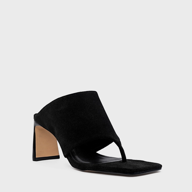 Open Mule Maxi Thong Salto Uno Couro Suede Preto