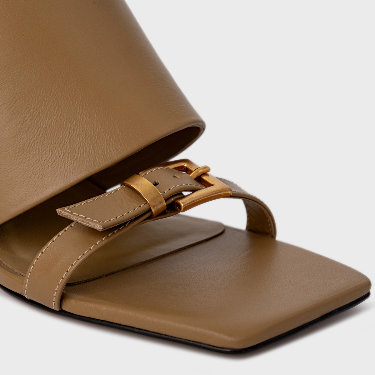 Open Mule Maxi Tira Salto Uno Couro Bege Almond