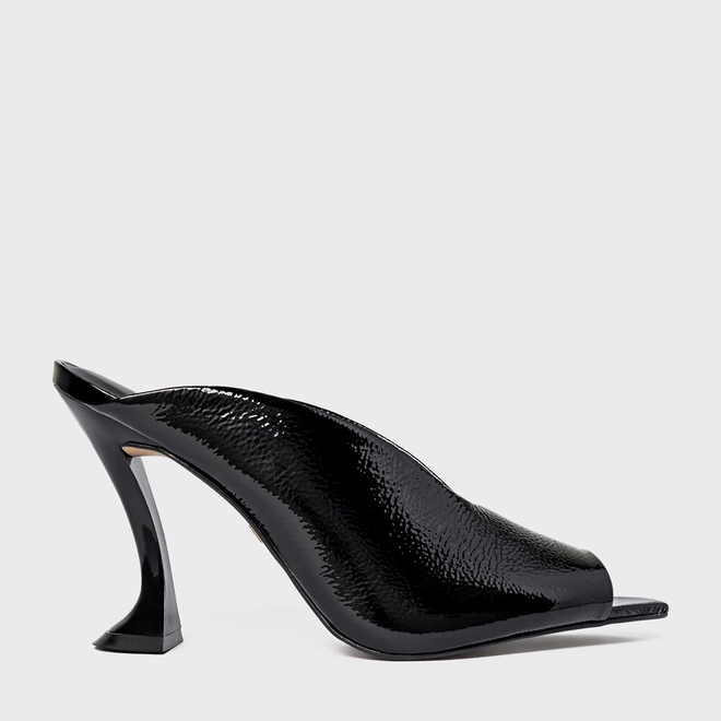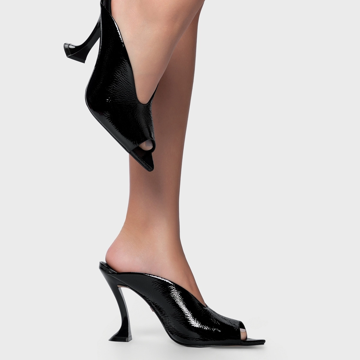 Open Mule Salto Silhoutte Couro Verniz Preto