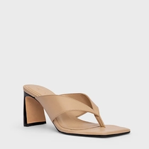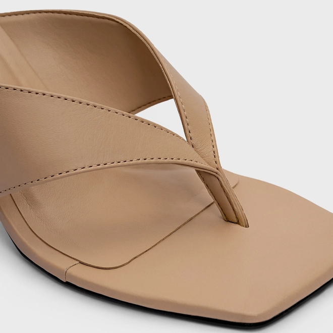 Open Mule Thong Iconic Salto Reto Couro Bege Ginger