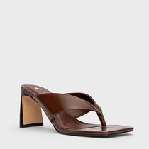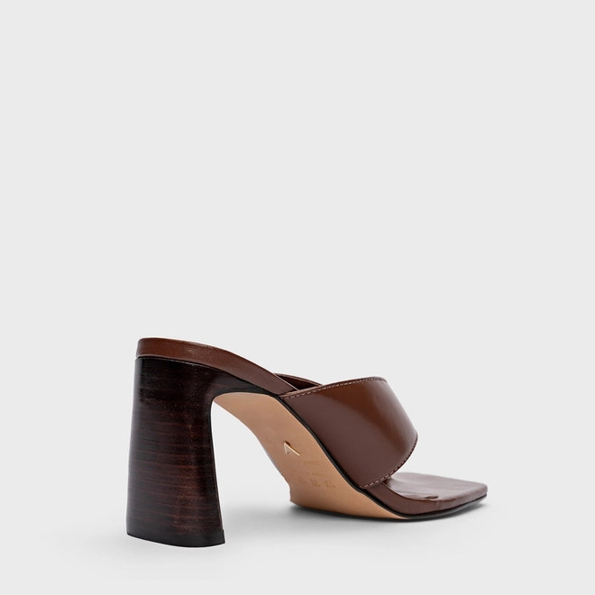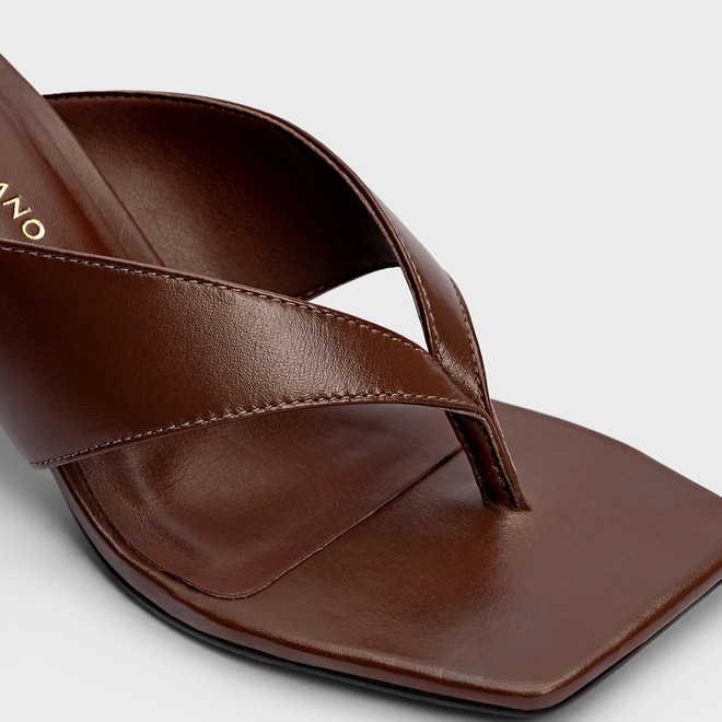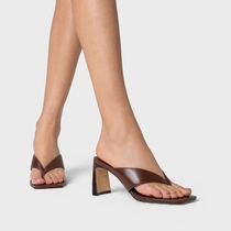 Open Mule Thong Iconic Salto Reto Couro Marrom Brunette