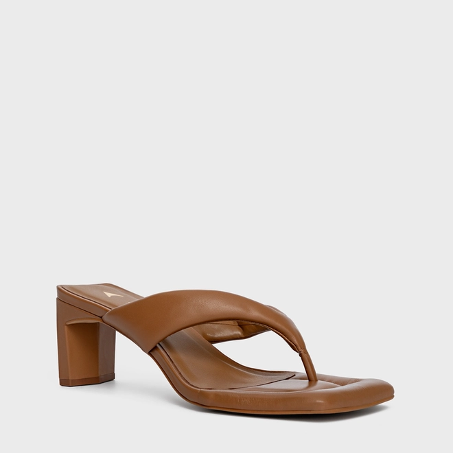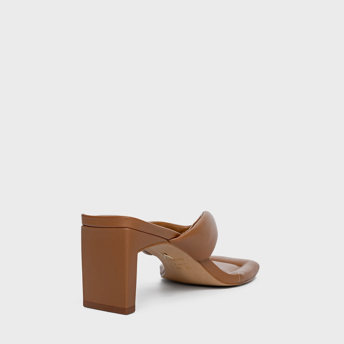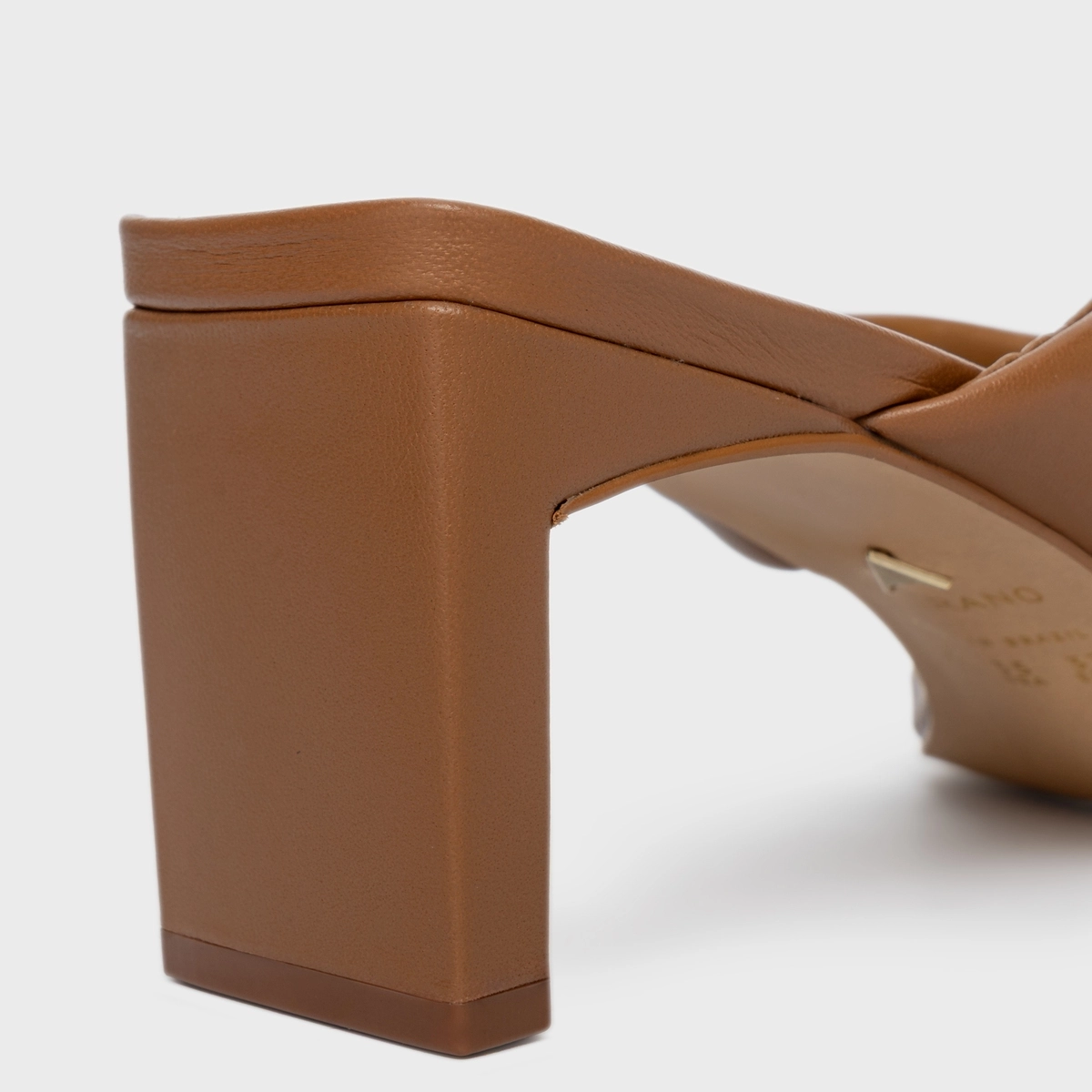 Open Mule Thong Puffy Salto Pilar Couro Marrom Ibiza