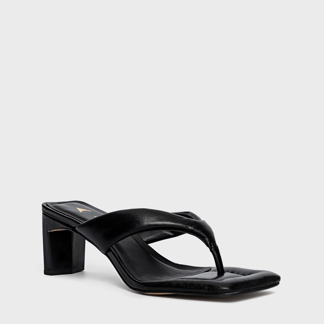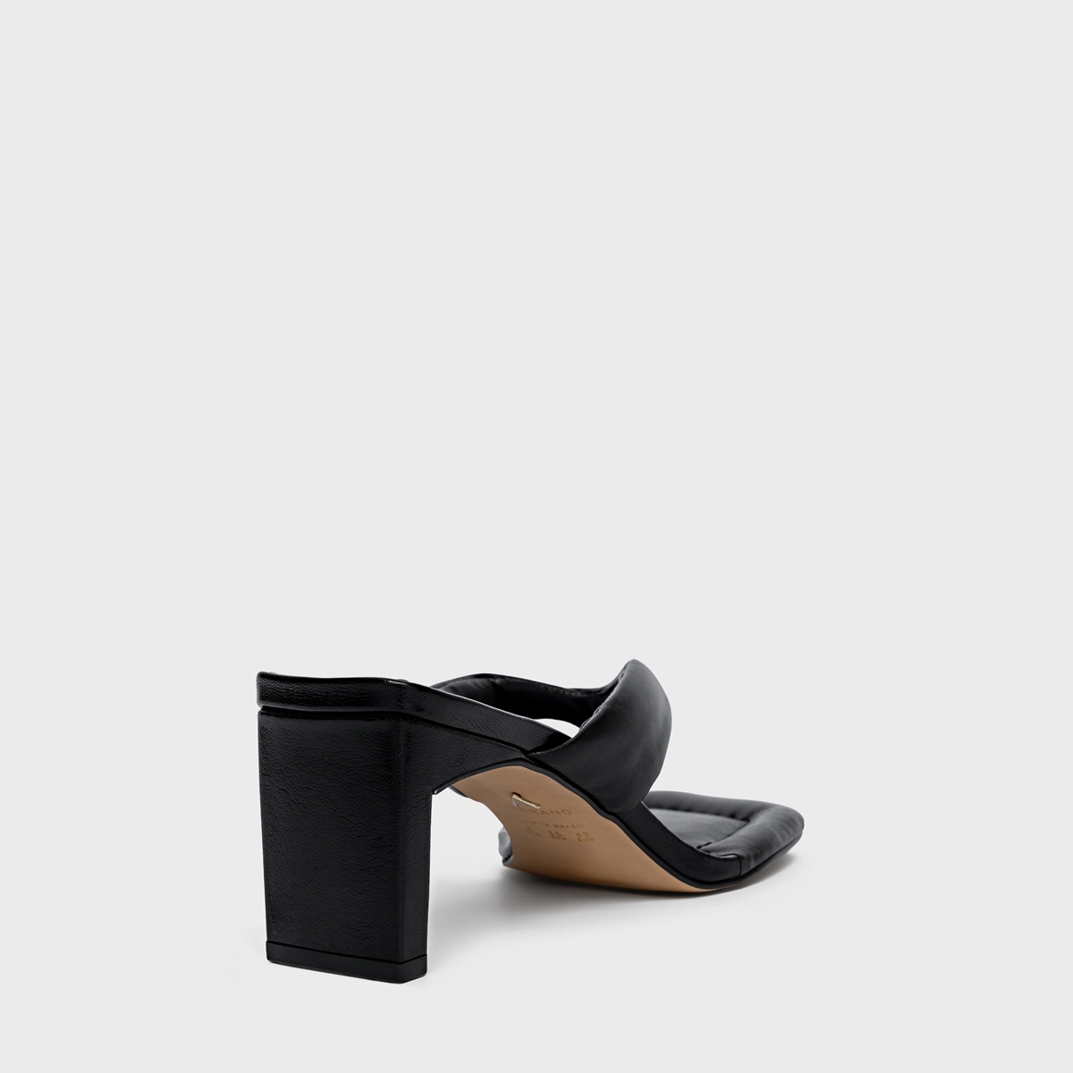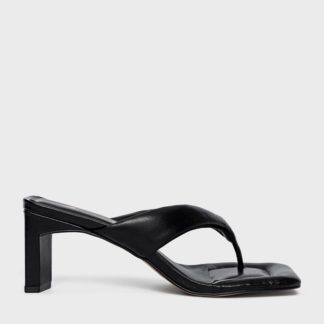 Open Mule Thong Puffy Salto Pilar Couro Preto