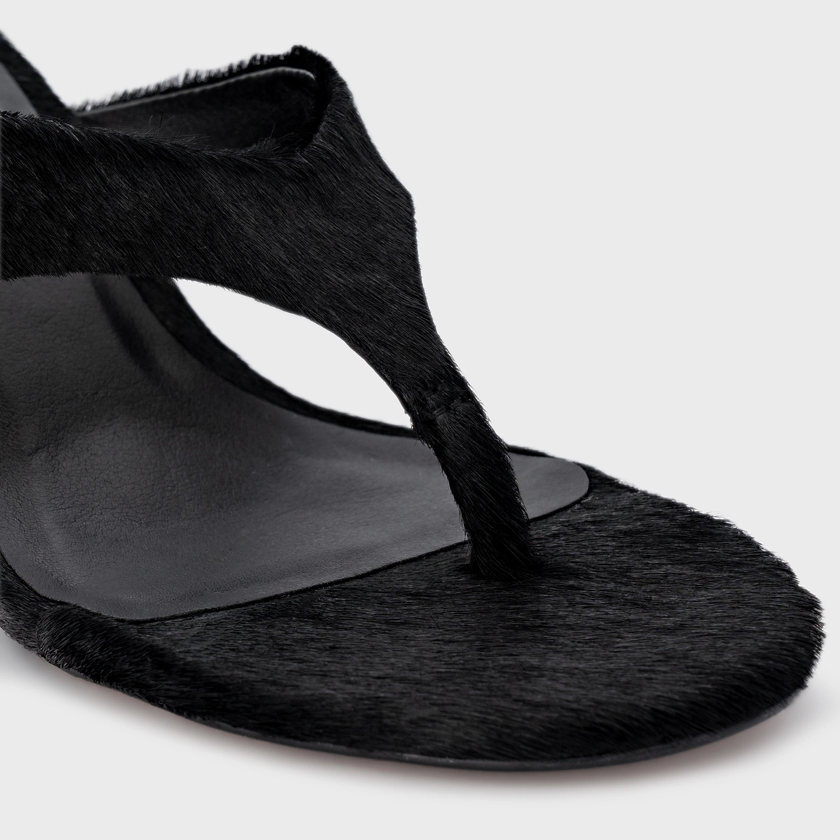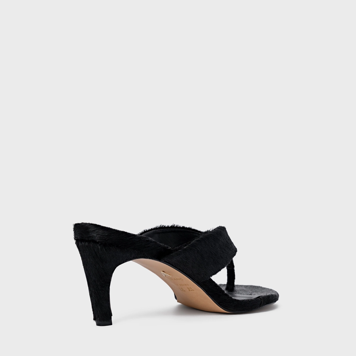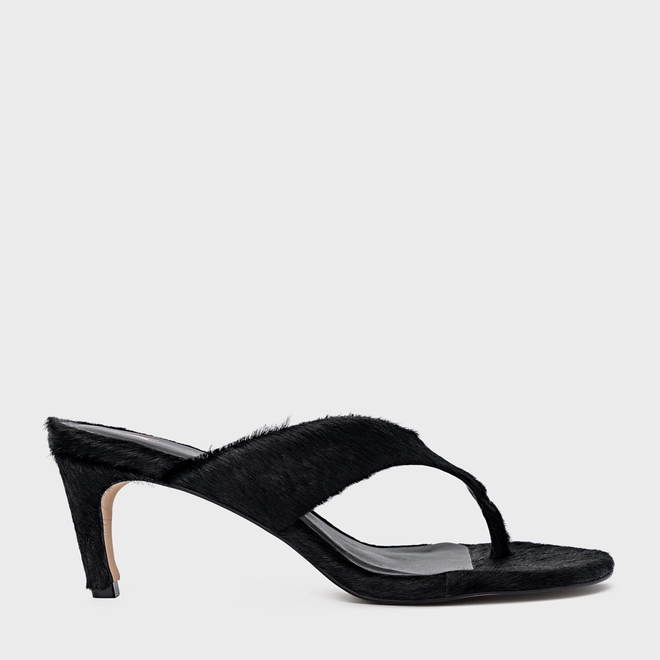 Open Mule Thong Timeless Salto Fino Pelo Preto