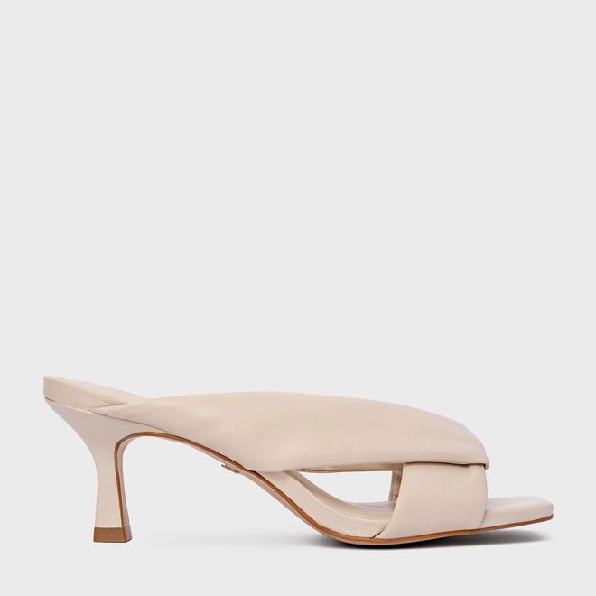 Open Mule Tiras Puffy Salto Fino Couro Off White Cotton