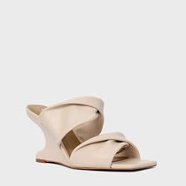 Open Mule Twist Anabela Curve Couro Off White Cotton