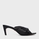 Open mule em couro, com bico fino aberto e salto estilo kitten heel. Possui tira sobre os dedos com efeito torcido.