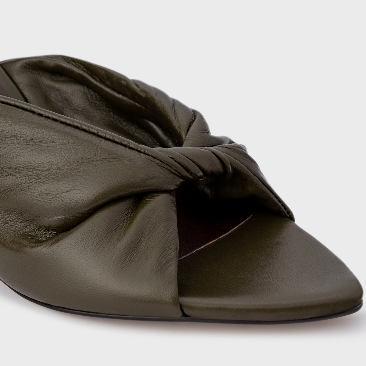 Open Mule Twist Salto Fino Couro Verde Herb