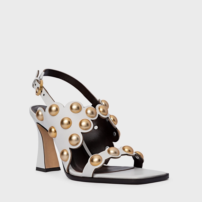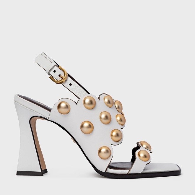 Sandália Balls Recorte Salto Flared Couro Branco