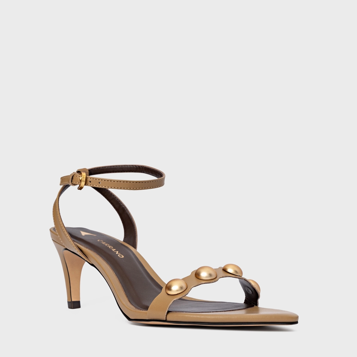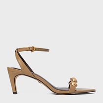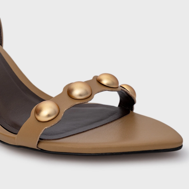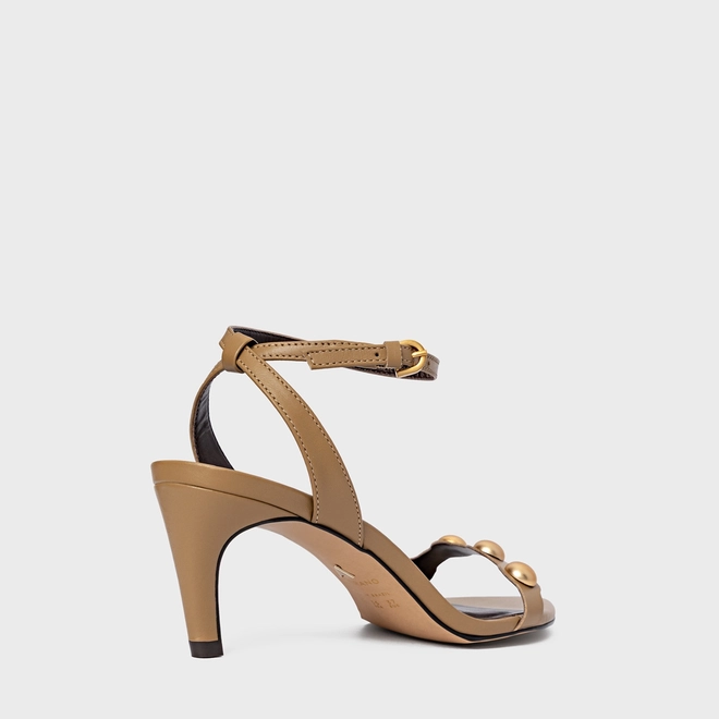 Sandália Balls Salto Fino Couro Bege Almond