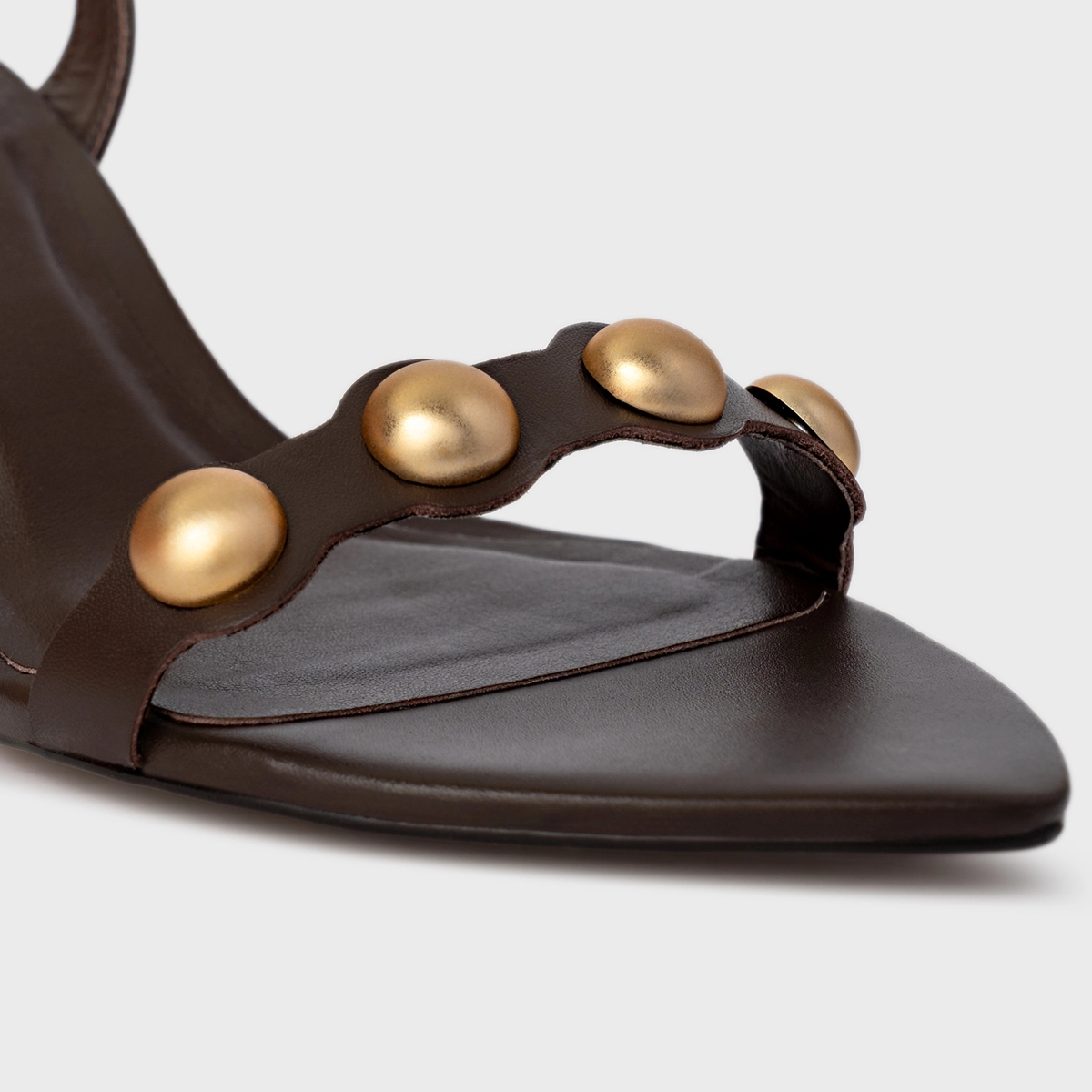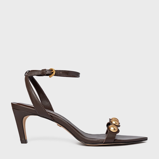 Sandália Balls Salto Fino Couro Marrom Dark Brown
