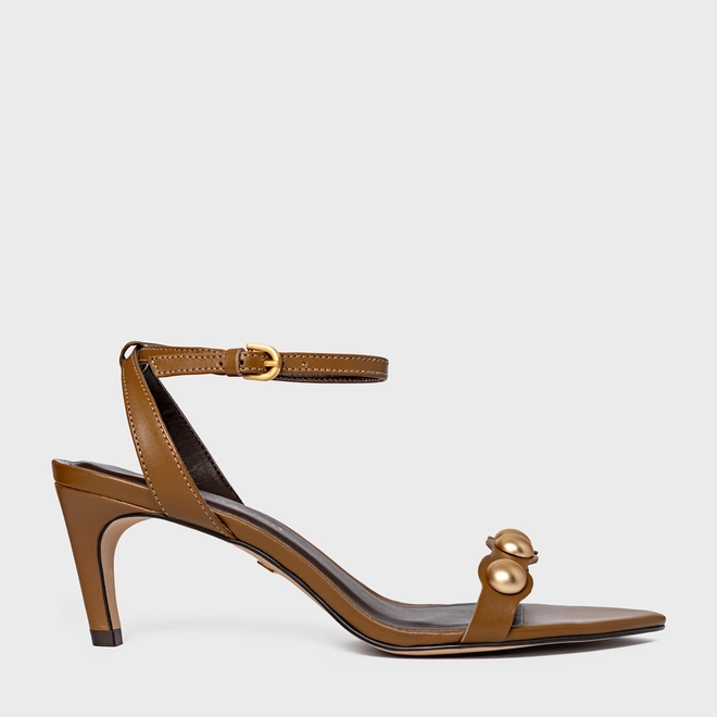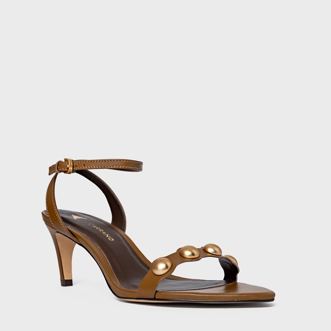 Esta sandália é a escolha perfeita para quem aprecia um visual "lady-like" com um toque moderno. As esferas metálicas transformam um modelo clássico de tiras finas em uma peça de design arrojado e muito atual.