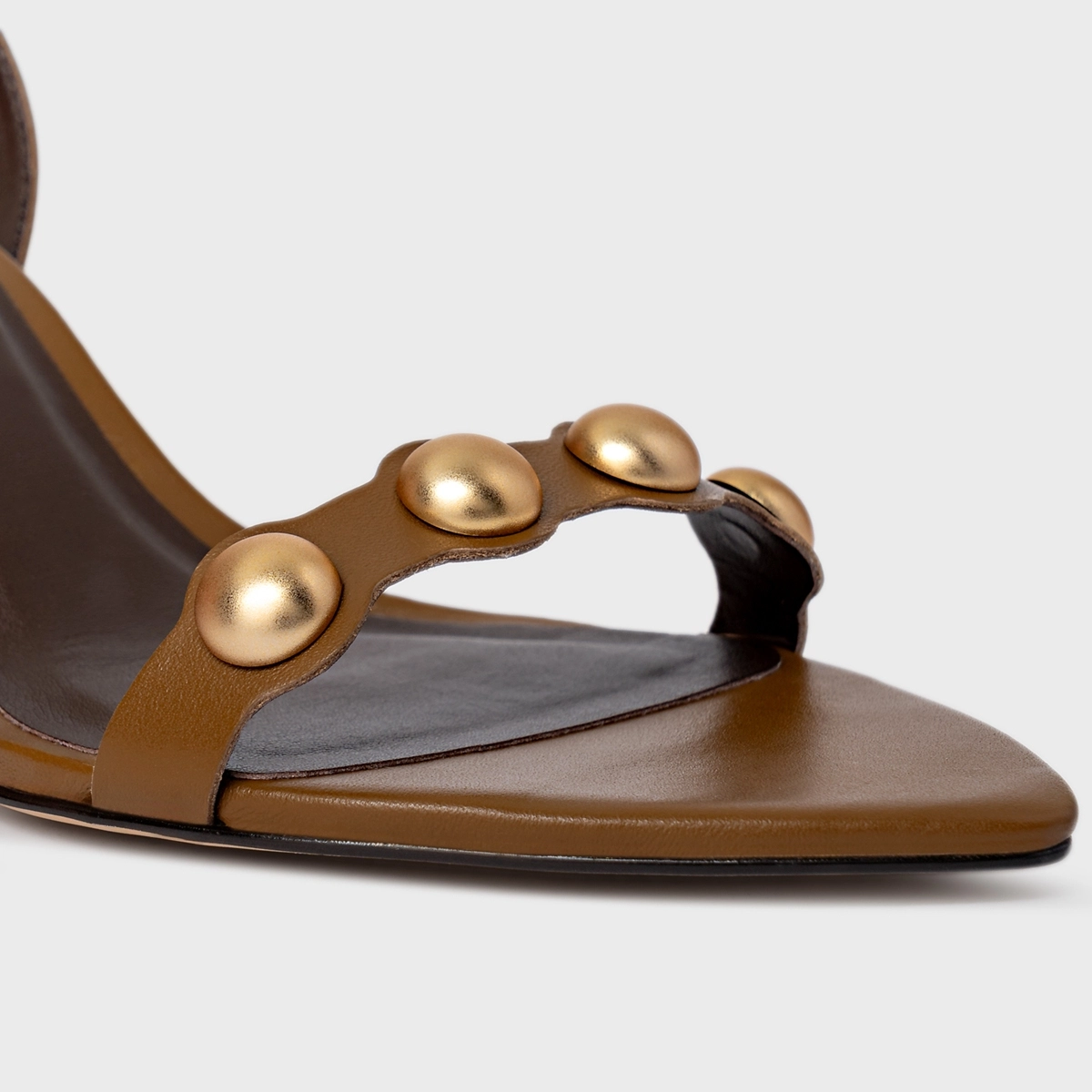 Sandália Balls Salto Fino Couro Marrom Saddle