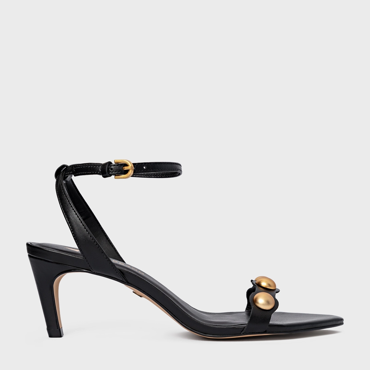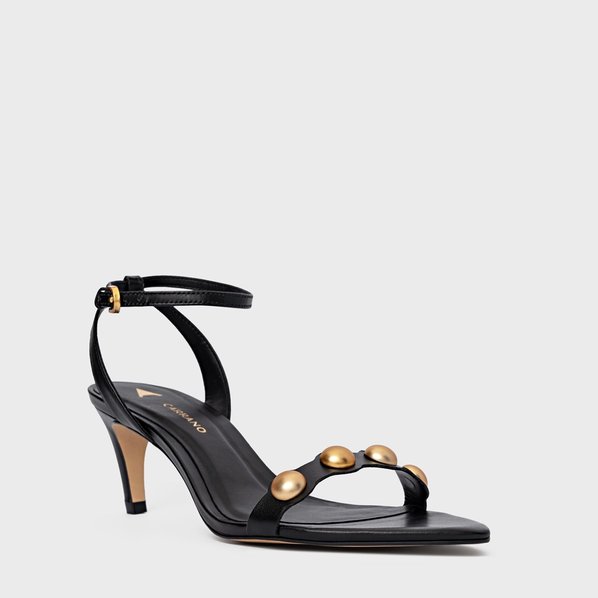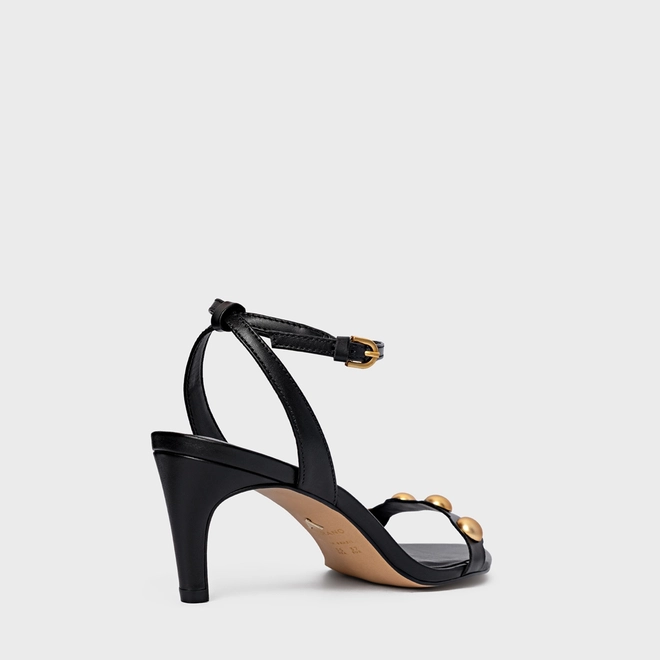 Esta sandália é a escolha perfeita para quem aprecia um visual "lady-like" com um toque moderno. As esferas metálicas transformam um modelo clássico de tiras finas em uma peça de design arrojado e muito atual.