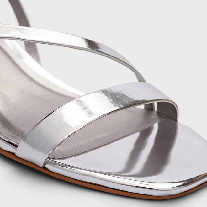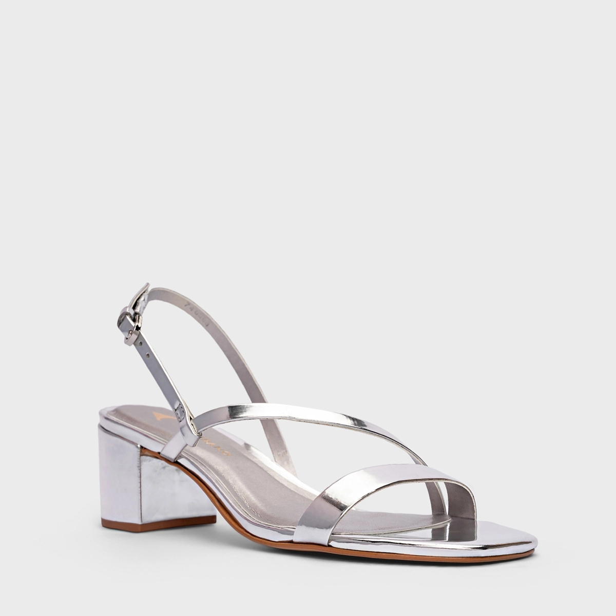 Sandália Basic Salto Bloco Couro Spechio Prata
