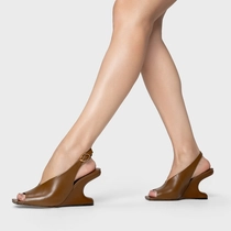 Sandália Bold Anabela Curve Couro Marrom Saddle
