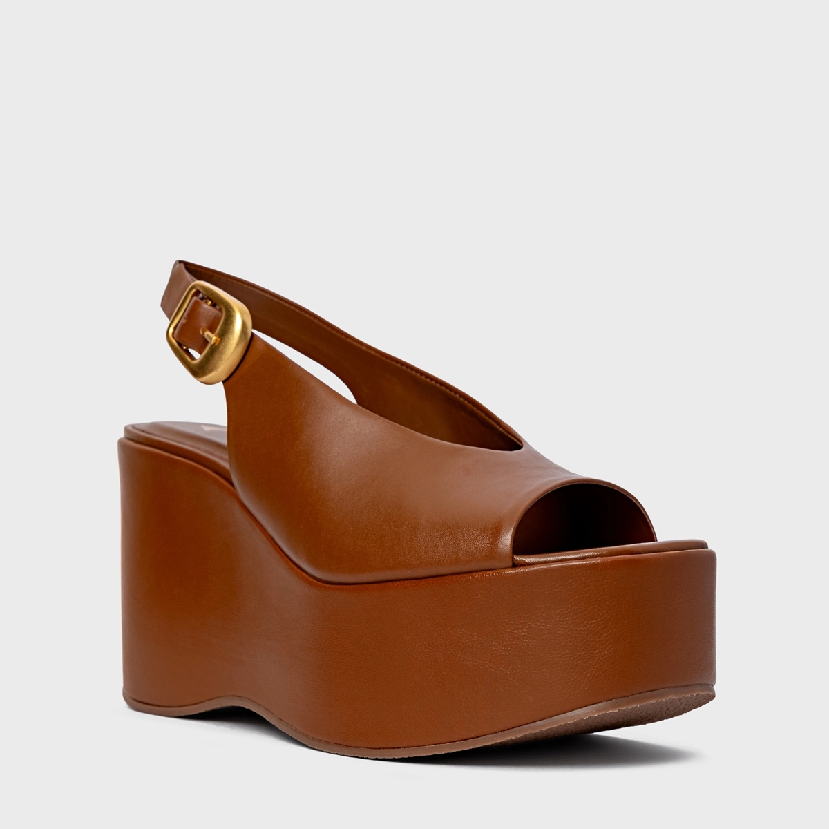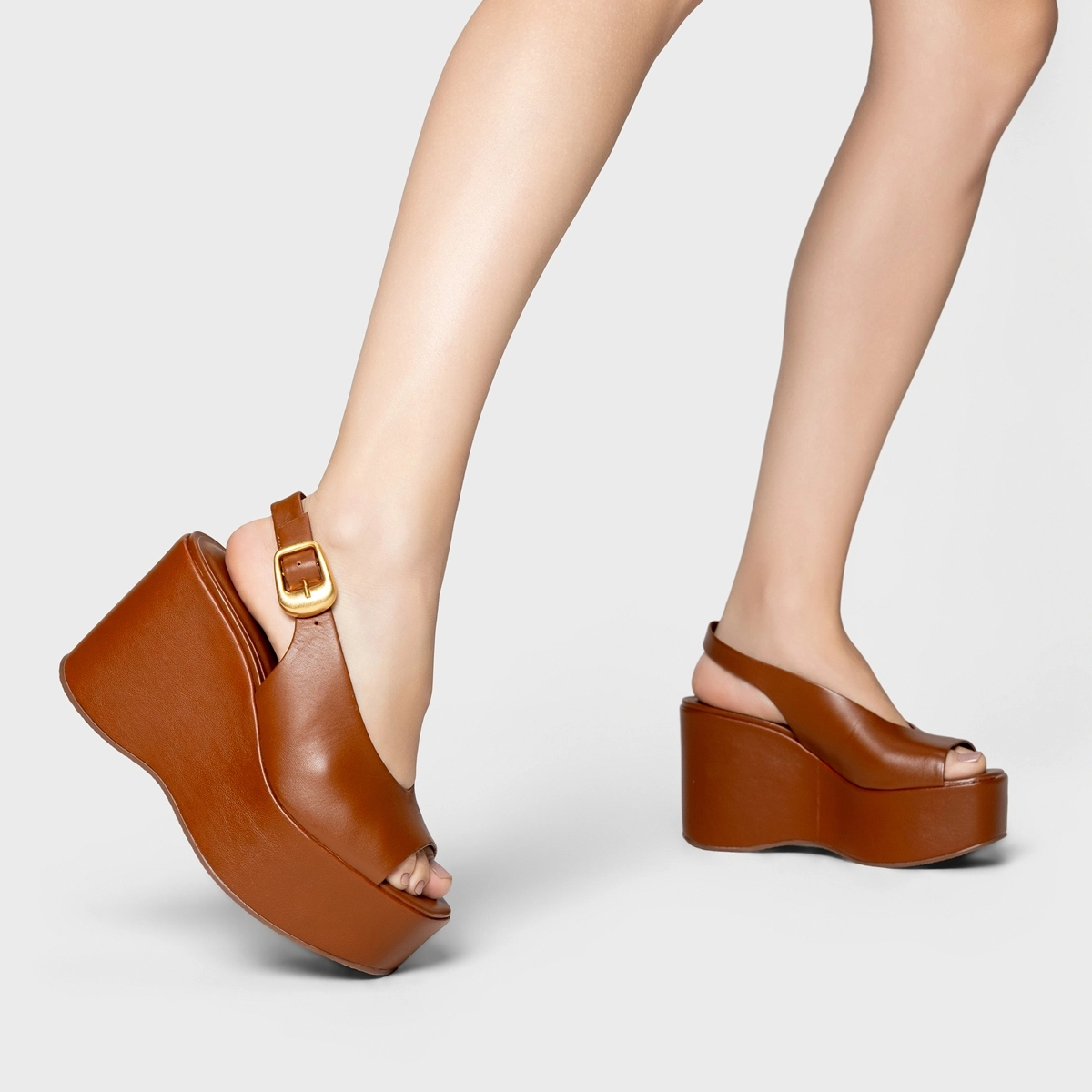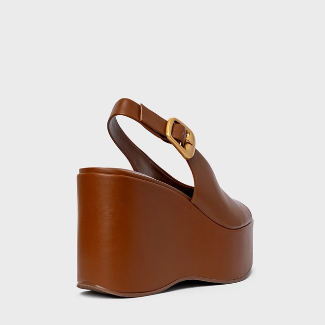 Sandália Bold Maxi Anabela Couro Marrom Ferrugem