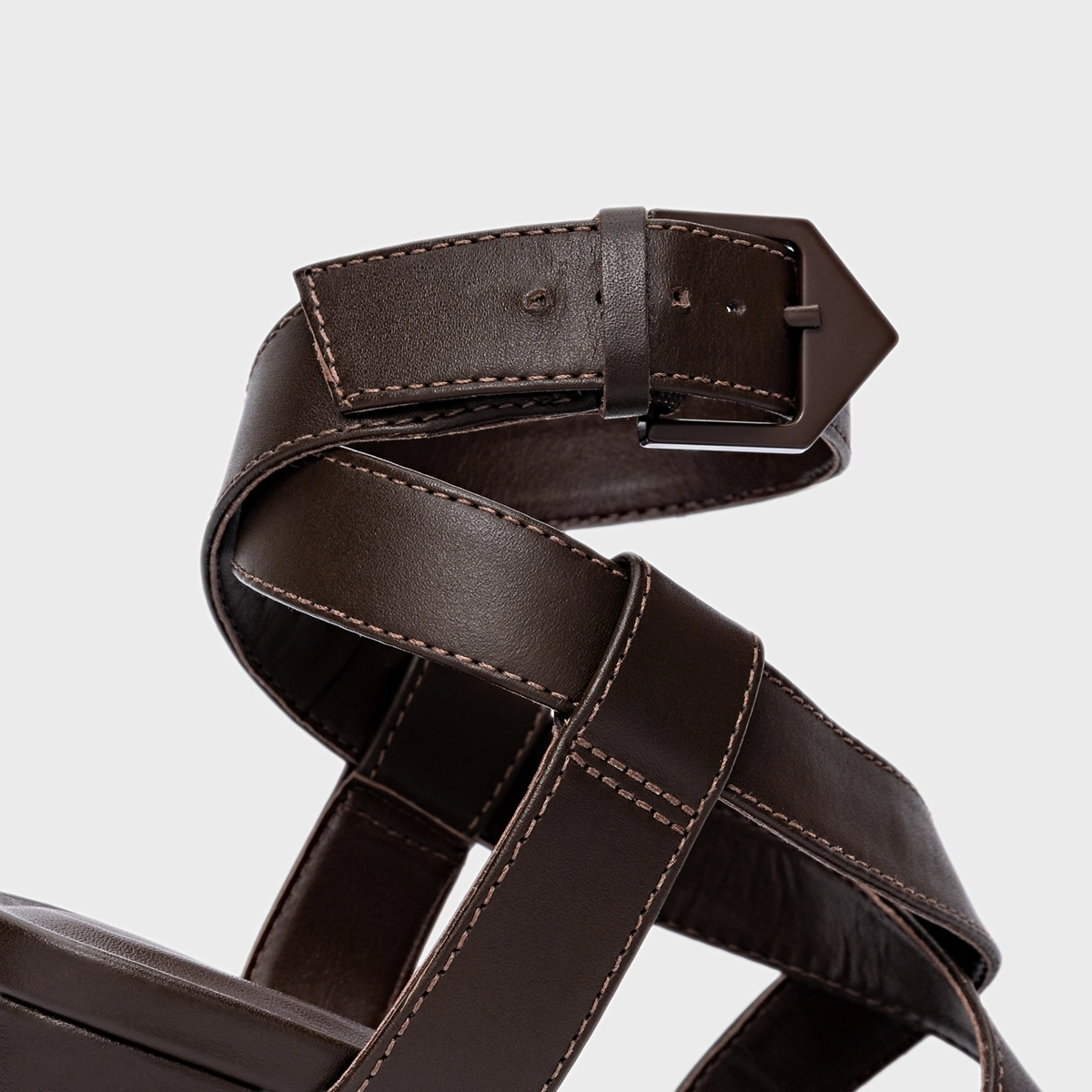 Sandália Bold Tiras Salto Bloco Couro Marrom Dark Brown