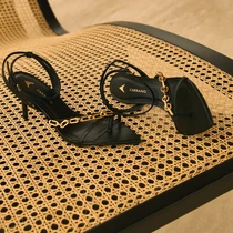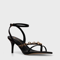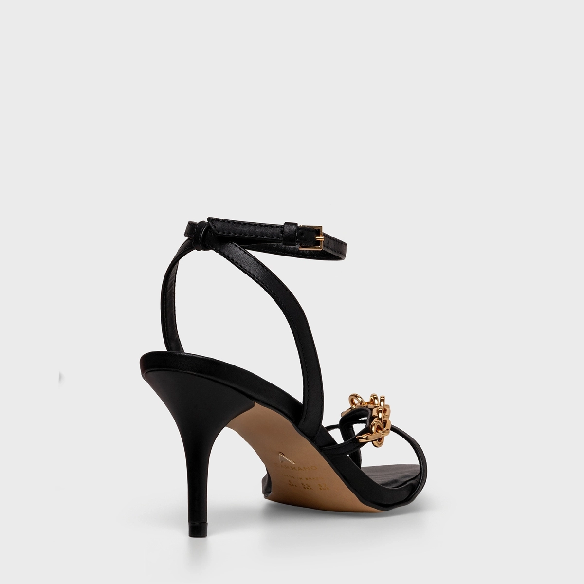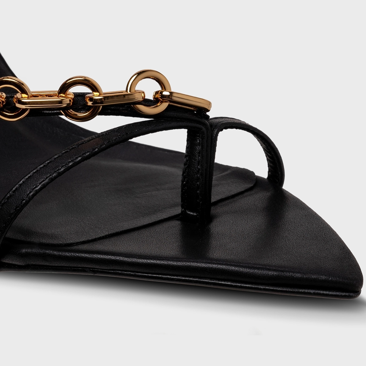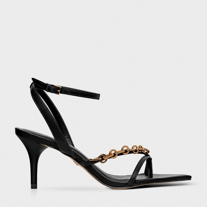 Sandália Chain Bico Folha Salto Fino Couro Preto