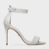 Sandália de couro com salto fino alto e bico arredondado. Conta com tira sobre os dedos e outra no tornozelo com fechamento em fivela.