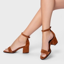 Sandália Classic Salto Bloco Médio Couro Suede Marrom Ferrugem