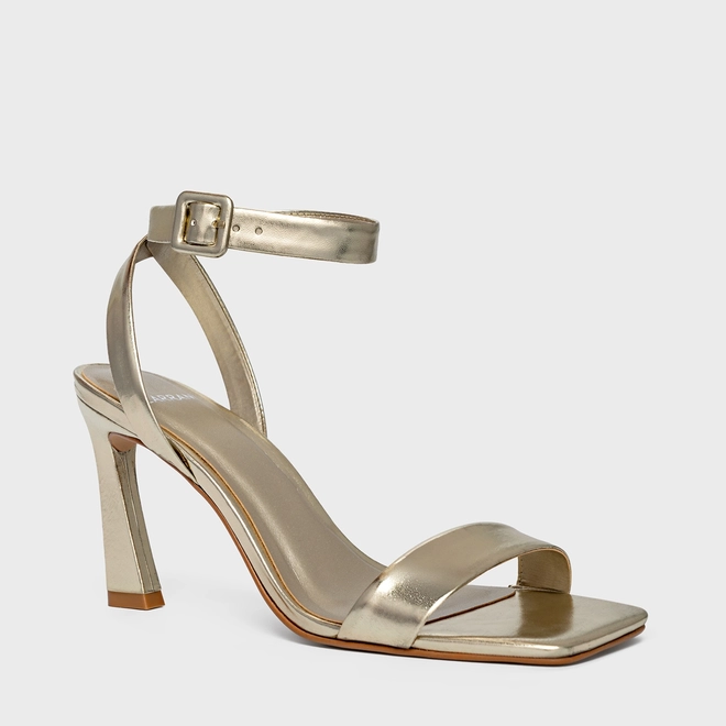 Sandália Classic Salto Yve Couro Metalizado Dourado
