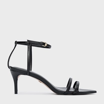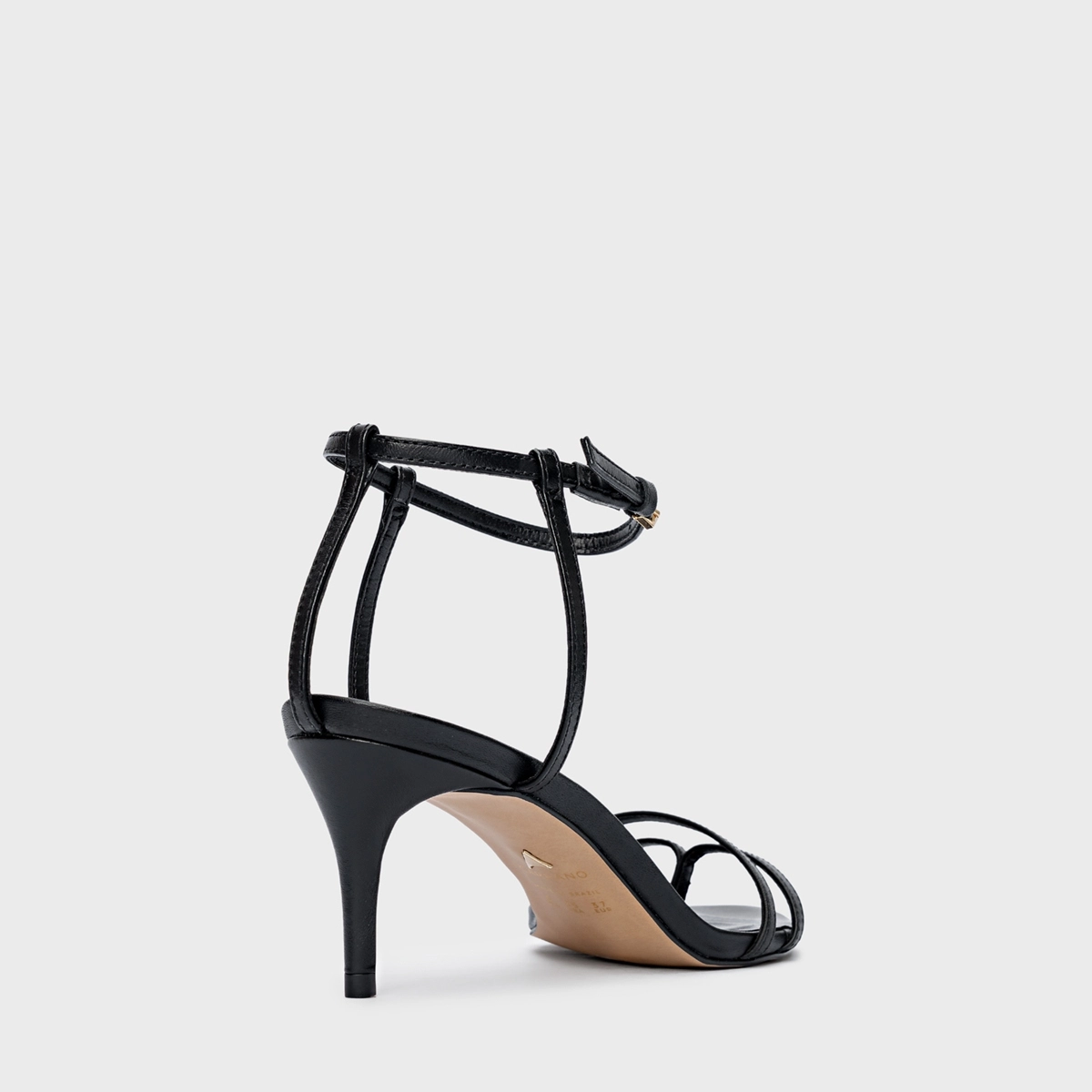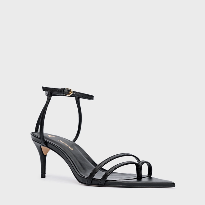 Sandália Classy Straps Salto Fino Couro Preto